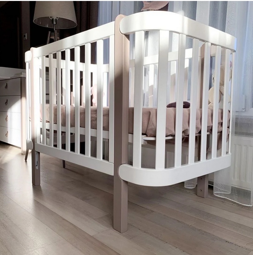 Бебешка кошара БЯЛО/КАПУЧИНО + Колелца