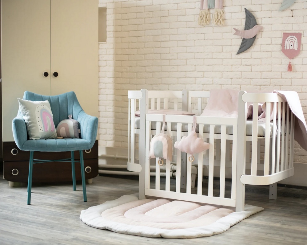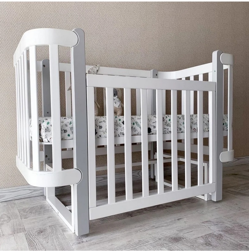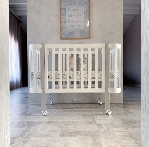 Бебешка кошара Монако БЯЛО/СИВО + Колелца