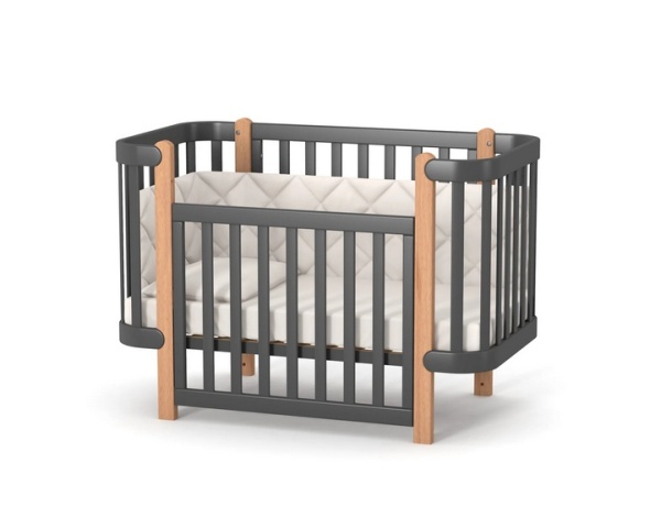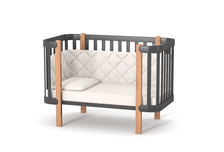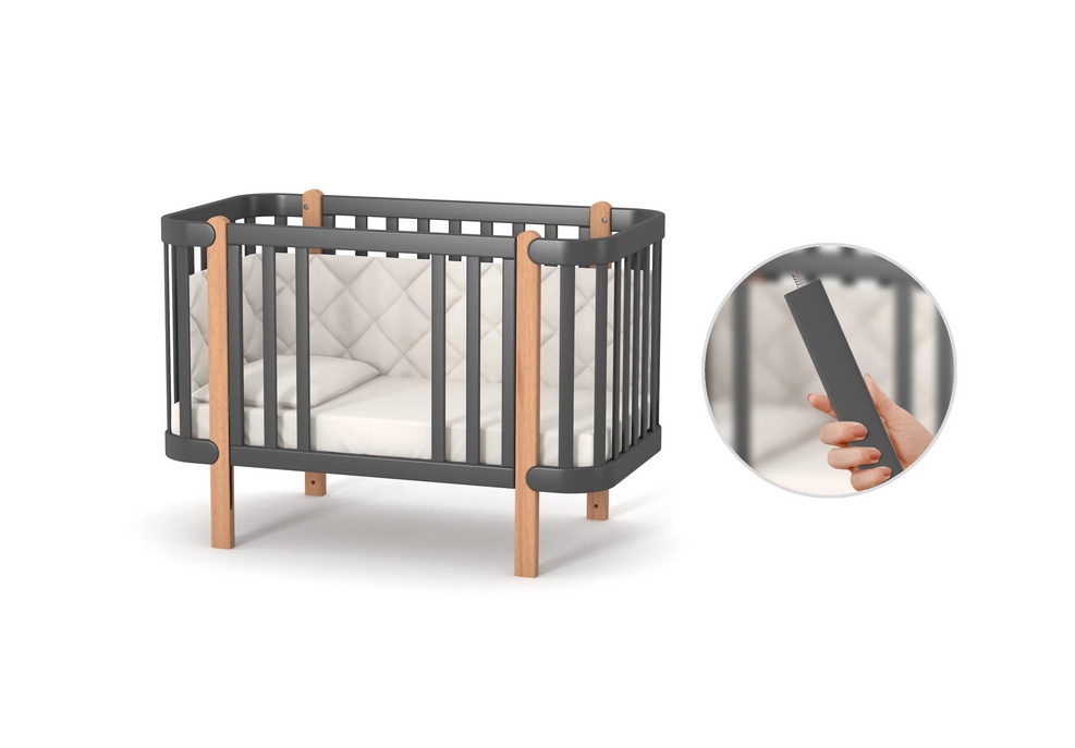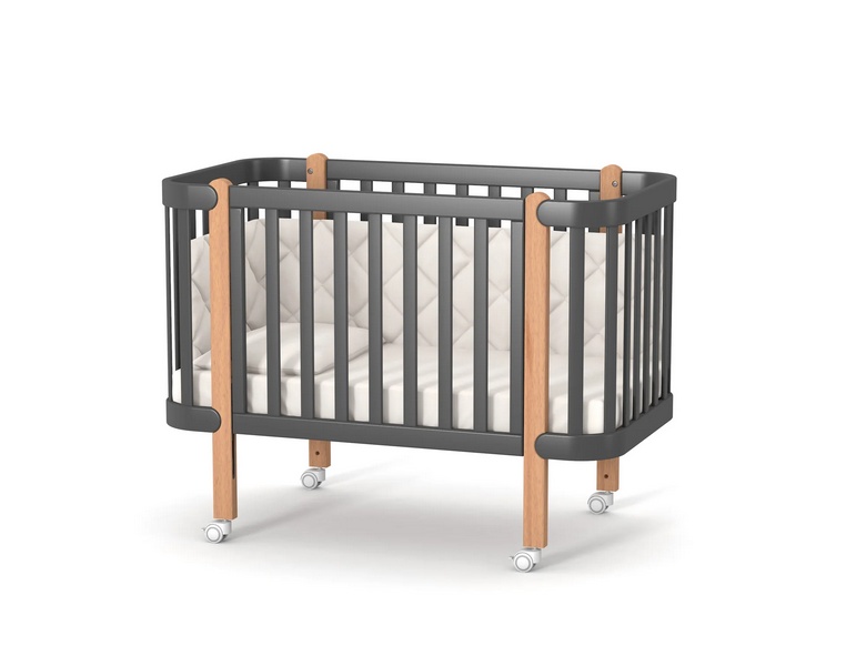 Бебешка кошара Монако ГРАФИТ/ДЪРВО + Колелца
