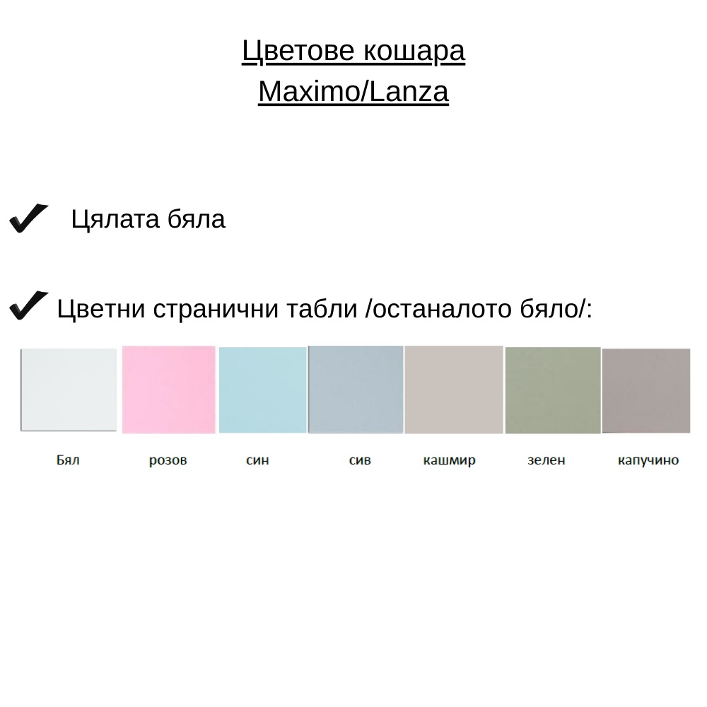- Колелца: има опция за монтиране на колелца - При избор на колелца, те са със спирачки. Не гаранитаме за цвета на колелцата - бял, сив, черен - зависи от наличността и не може да се избира предварително!