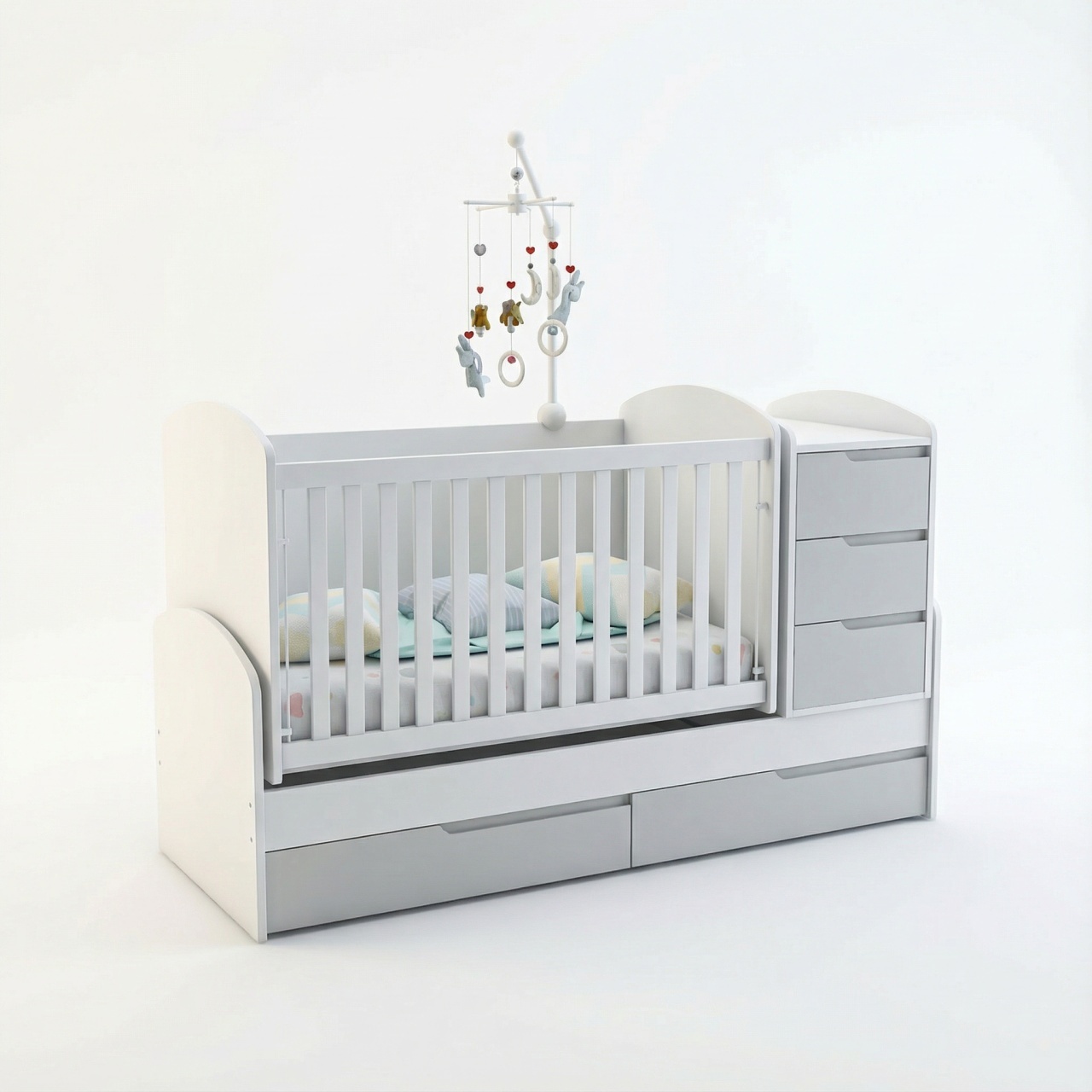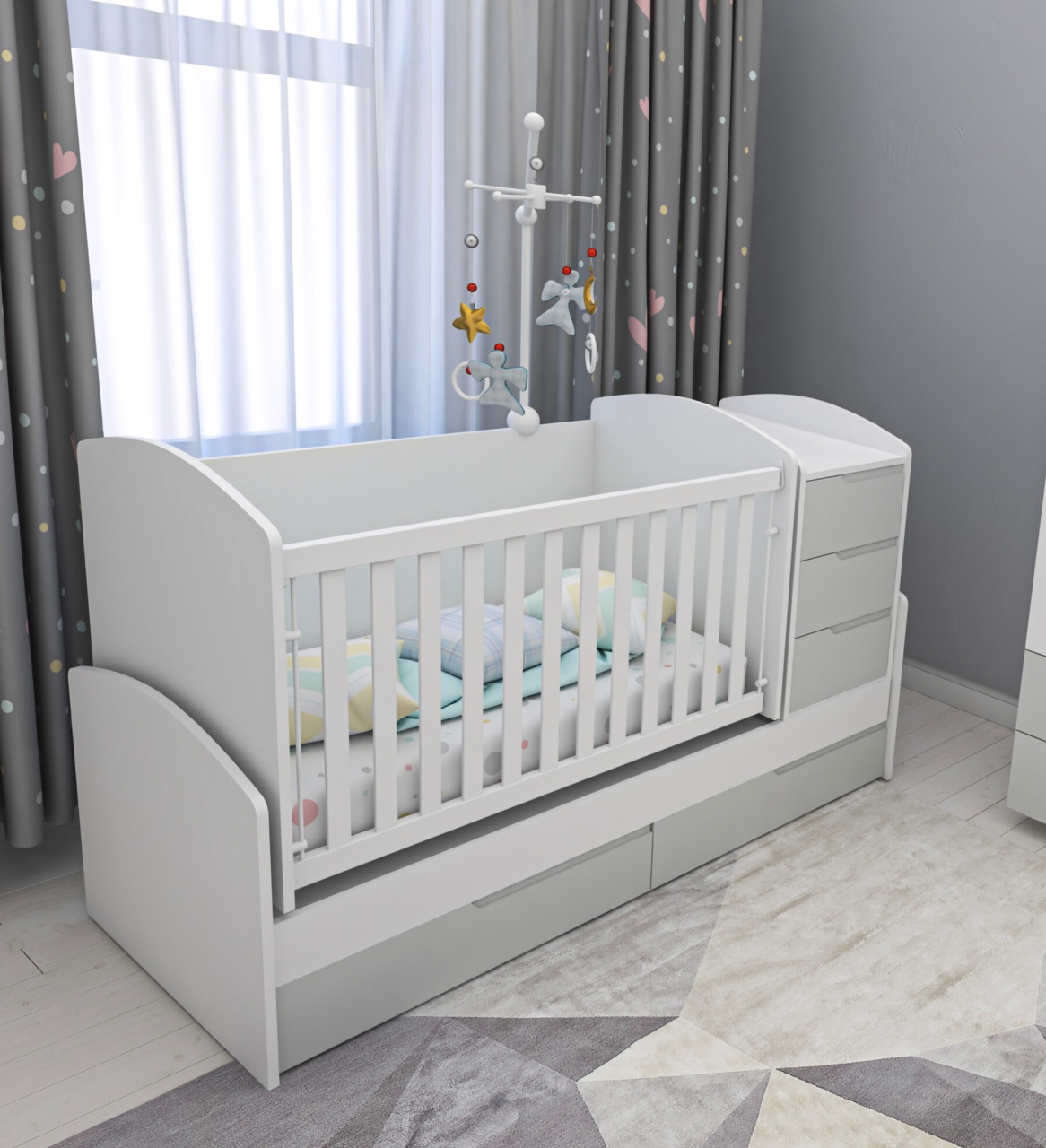Бебешка трансформираща се кошара и детско легло от ПДЧ и МДФ със скрити дръжки СЪНИ