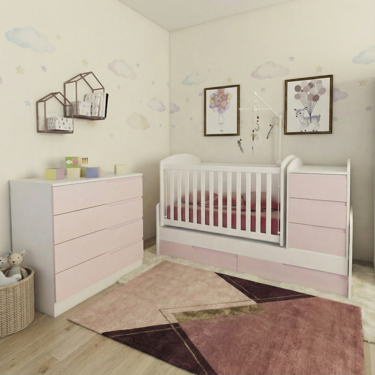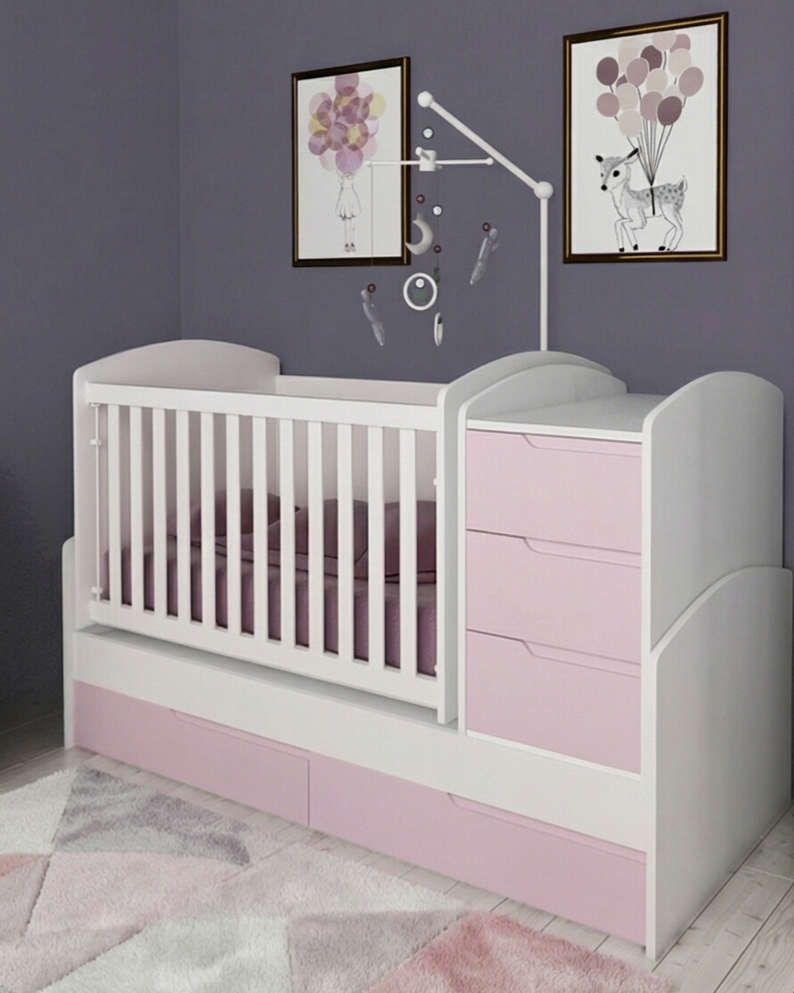 Обзавеждане с трансформираща се бебешка кошара СЪНИ и скрин СЪНИ