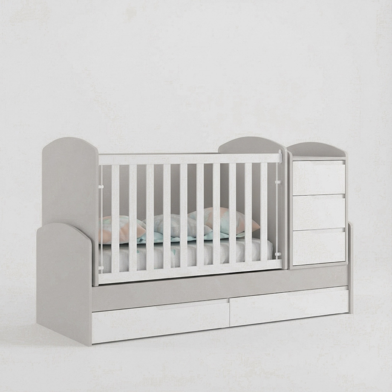 Бебешка трансформираща се кошара и детско легло от ПДЧ и МДФ със скрити дръжки СЪНИ