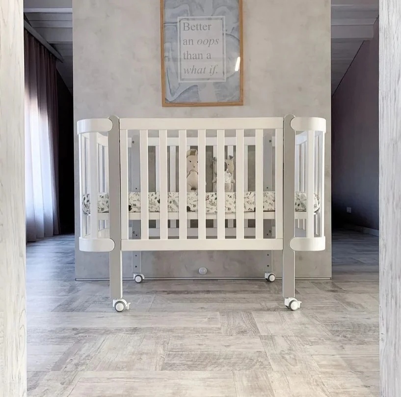 Бебешкото креватче е покрито с боя на водна основа със сребърни йони, които осигуряват антибактериална защита. Това иновативно покритие гарантира, че дори ако бебето гризе креватчето, никакви вредни вещества или бактерии няма да попаднат в тялото му, осигурявайки спокойствие за родителите.