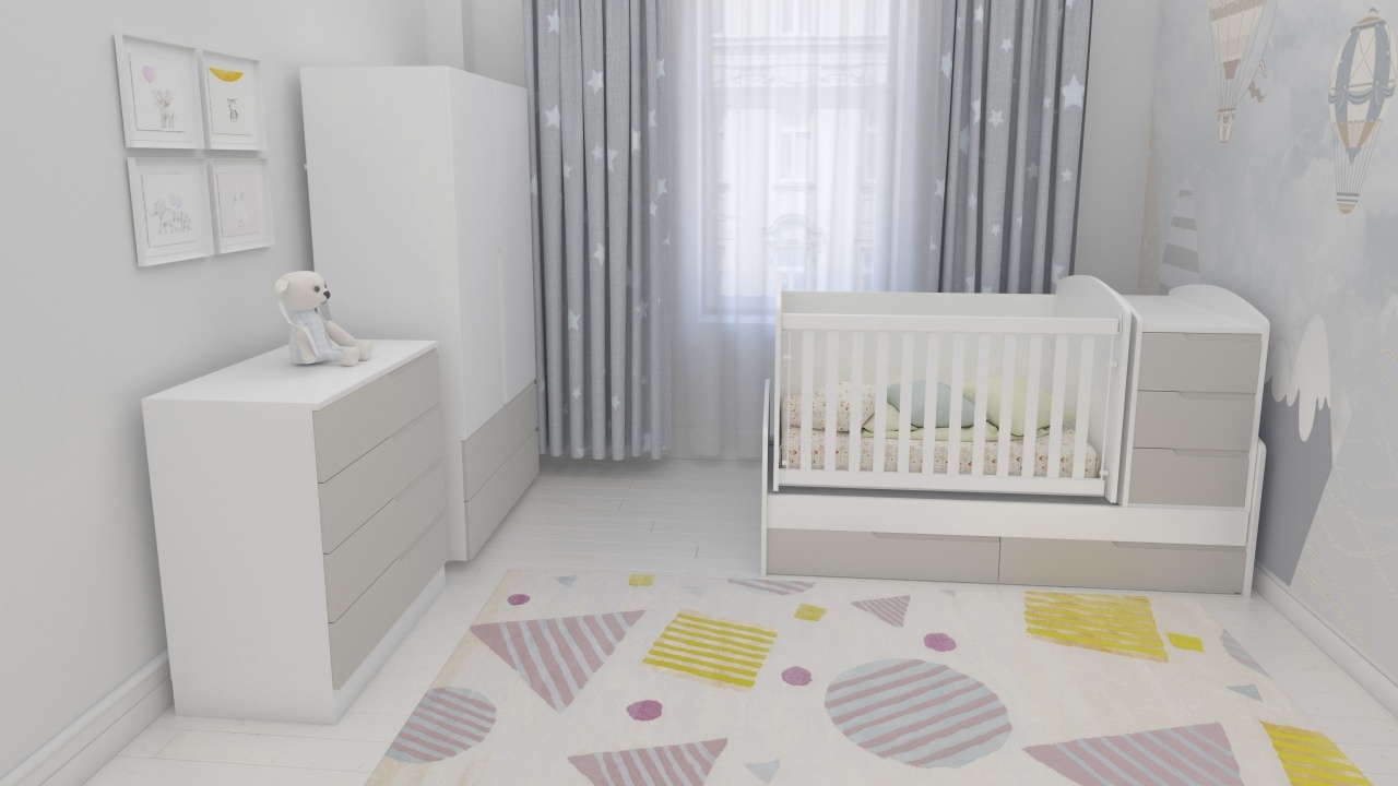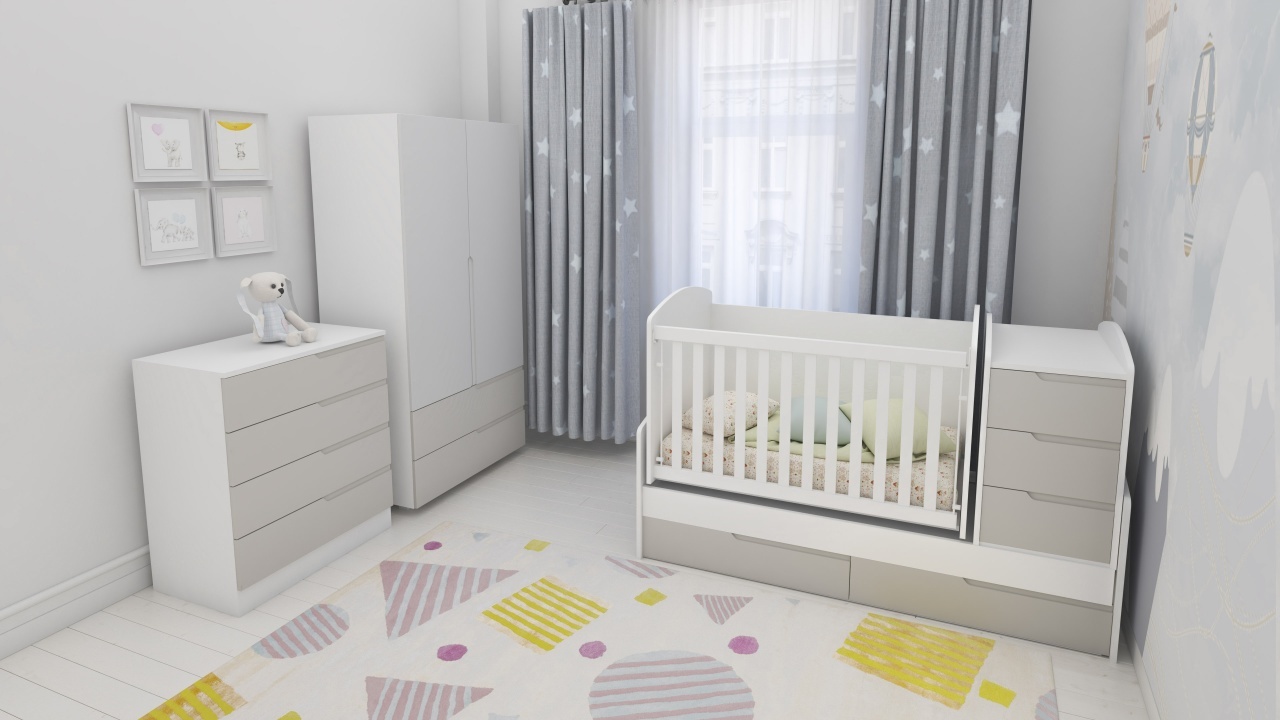Обзавеждане с трансформираща се бебешка кошара Съни, скрин Съни, Гардероб Съни