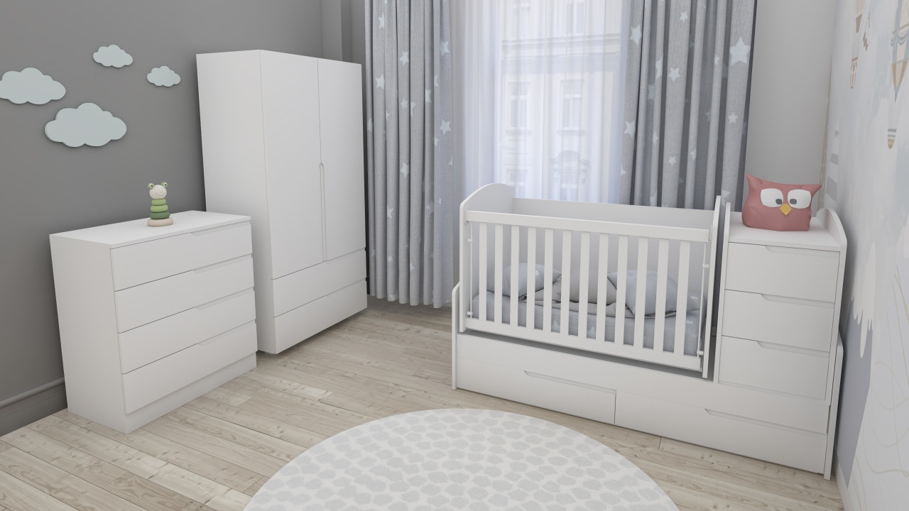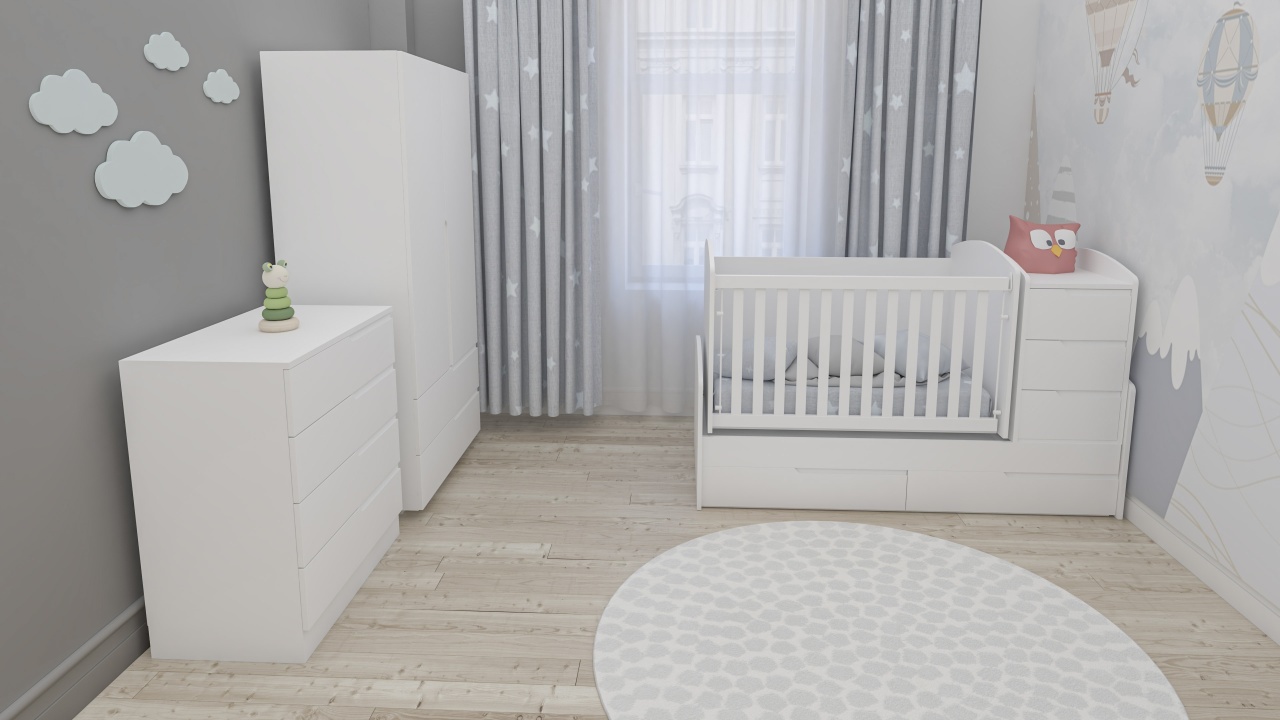 Обзавеждане с трансформираща се бебешка кошара Съни, скрин Съни, Гардероб Съни