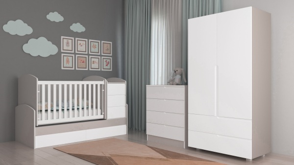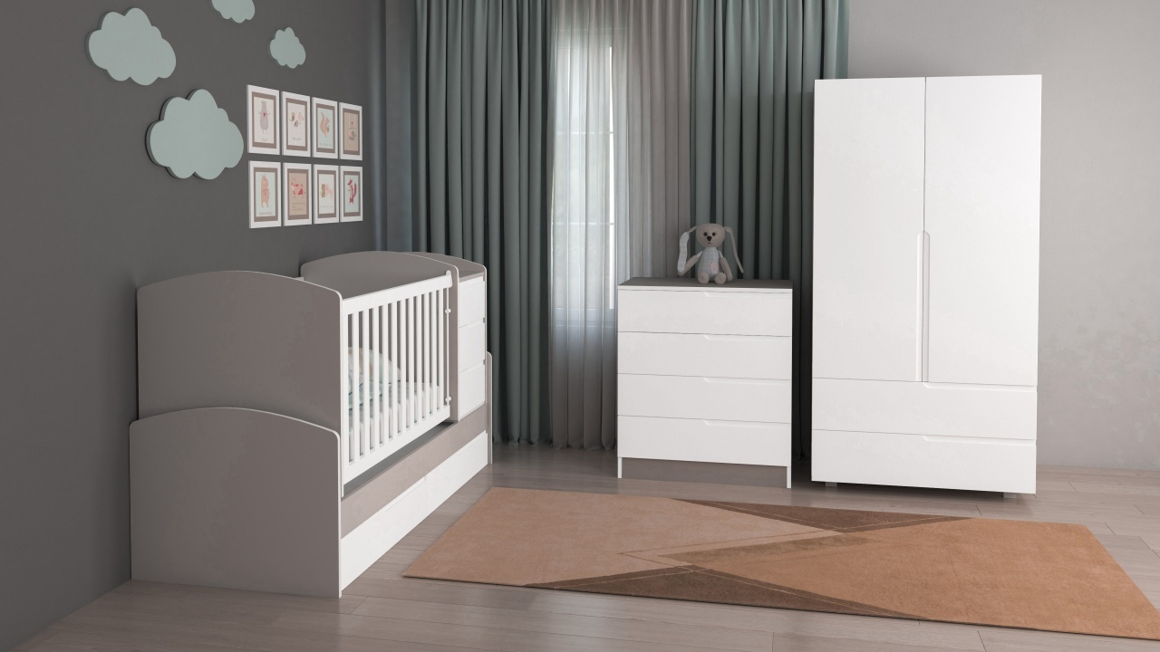 Обзавеждане с трансформираща се бебешка кошара Съни, скрин Съни, Гардероб Съни