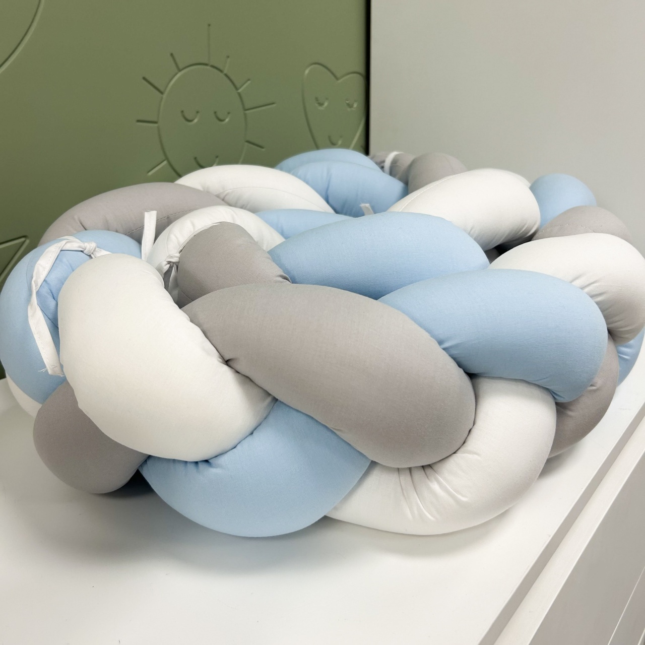 Плетен обиколник 240см Синьо/Сиво/Бяло